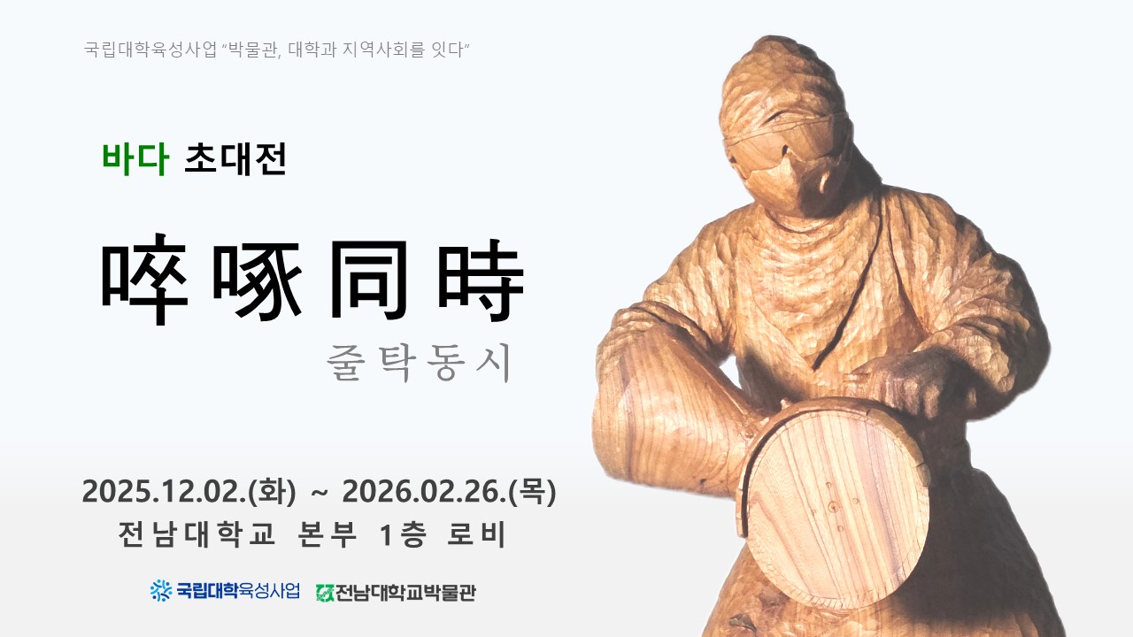 전남대학교박물관은 대학본부 1층 로비에서 바다 초대전 <줄탁동시 啐啄同時>를 개최합니다.